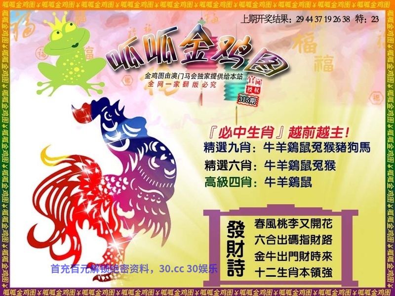 | 319期:必中六肖【猪虎猴鸡兔羊】开:發00准 |